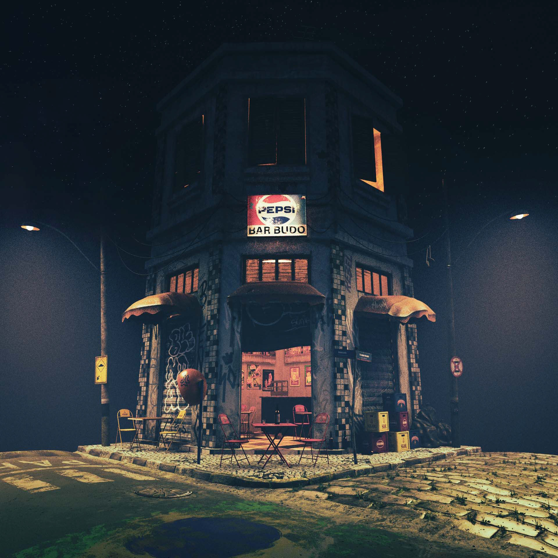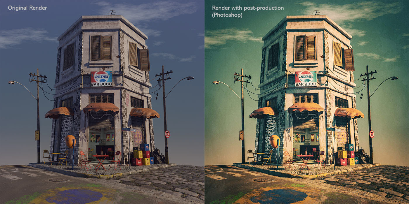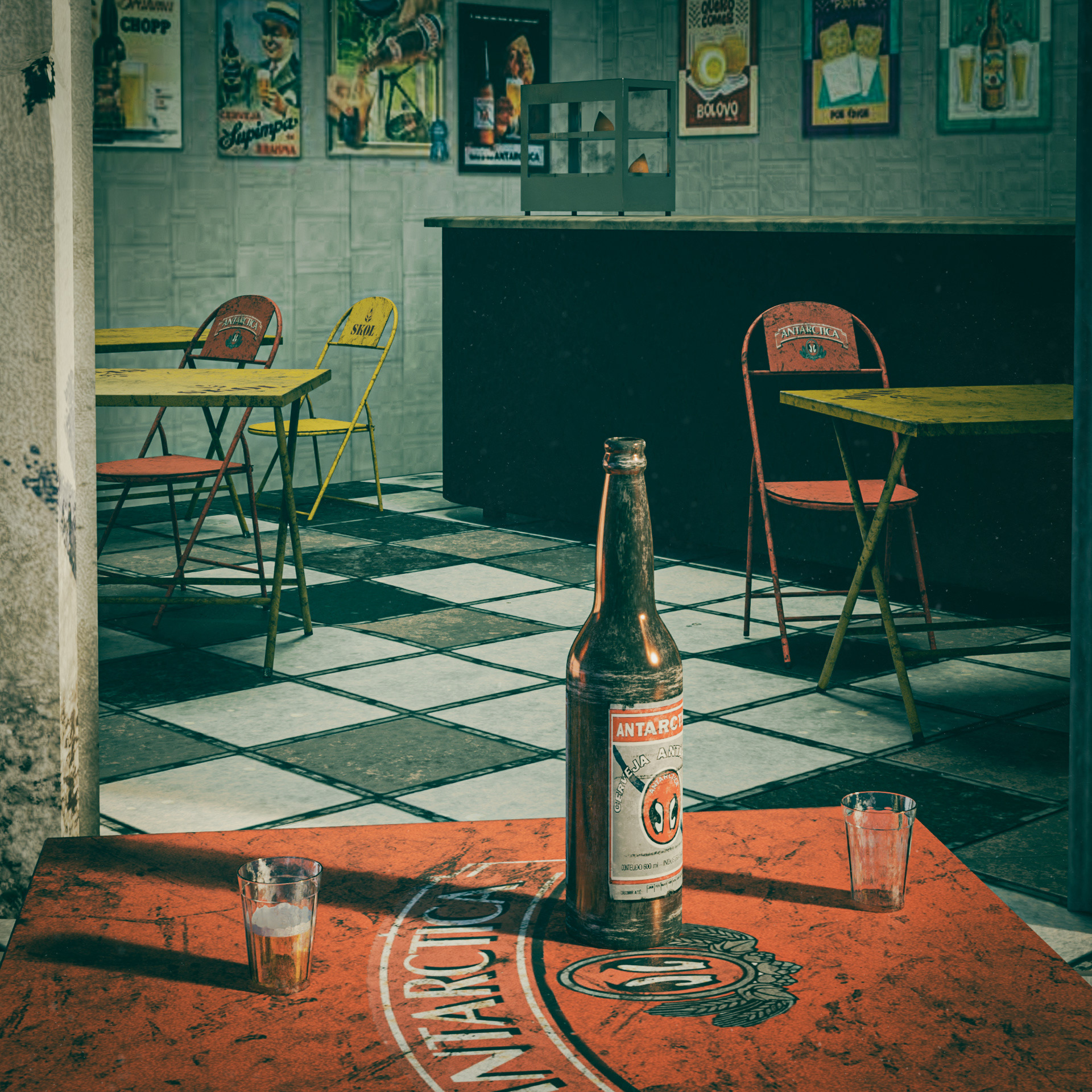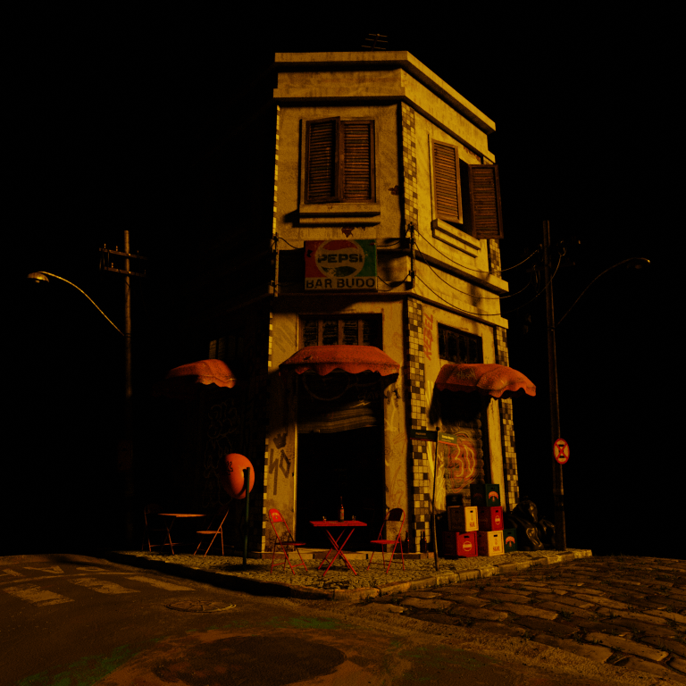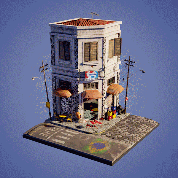 It took me approximately two months to research and create this 3D scene, considering several characteristics of a traditional Brazilian bar from the 70s/80s such as architecture, furniture and cultural characteristics. My memories of those childhood days. Here is my tribute to my beloved grandfather.